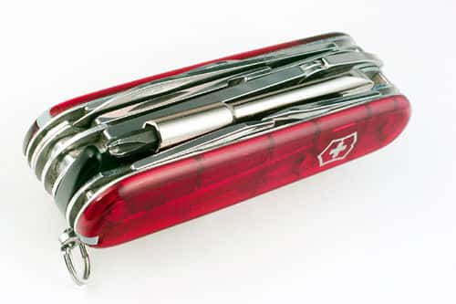 Para ampliar o negócio e atrair utilizadores mais refinados, Elsener aperfeiçoou o canivete e, assim, surgiram os modelos com ferramentas: abre latas, chave de fendas, punção e saca-rolhas, serrote, alicate, abre garrafas, palito de dentes, pinça, gancho de pesca, lente de aumento e até uma pequena bússola.